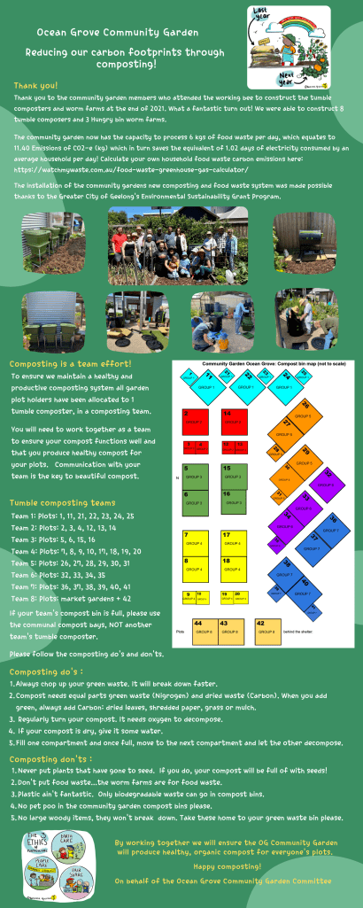 Thank you to the community garden members who attended the working bee to construct the tumble composters and worm farms at the end of 2021.
